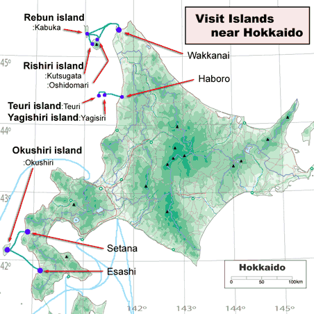Teuri island & Yagishiri island, northern west of HokkaidoSecret islandsNot many tourist visit these tiny islands. However, it is special as well. Specially east coast of Teuri island is beautiful! Haboro Y.H. has a page about this islands(in Japanese). You can see some pictures Ferrybetween Haboro, Hokkaido and Teuri island