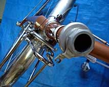 On the other hand, separable frames have never gained currency among Japanese cyclists. Because it was more expensive and heavier than normal frames. In these days, touring bikes are shadowed by MTB and Road Racers. Genuine touring bikes have got fewer and be unobtainable. As a result, Japanese cyclist buy MTB or Cross Bike as a touring bike. Some craftsmen still make genuine touring bikes as receiving an order from each customer, in many cases, while usually provide track frames to Keirin player. The frame size and it's stiffness is determined by your physical size and capacity. So, it provide excellent ride quality for you. It costs from 100,000 to 150,000 yen (frame only).