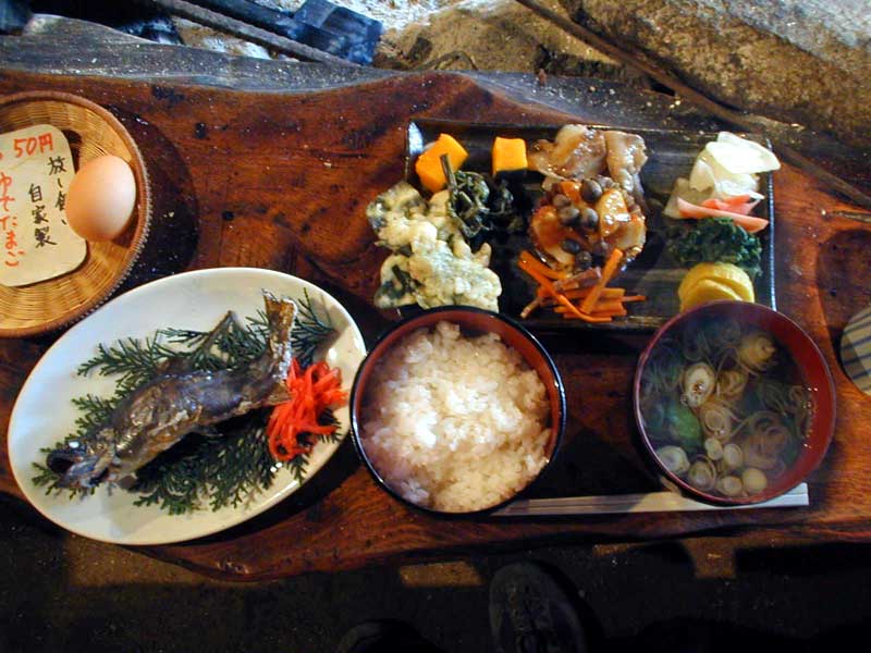 Japanese rice is very delicious. Why don't you try to cook by yourself! Japanese noodlesVarious kinds of noodles are available in Japan. Soba(そば,蕎麦)We love to eat this Buckwheat noodles; especially in Nagano where it is very popular. Soumen(そうめん,素麺)Very fine noodles made of wheat. We prefer to eat in summer. (Nagashisoumen (流しそうめん) is a funny way to enjoy eating at festival. Udon(うどん,饂飩)Noodles made of wheat. Ramen(ラーメン)Yellow noodles which sometimes called Chinese noodles. Generally it is oily and salty. OthersThere are many local noodles, Kishimen(きし麺) in Nagoya ,Kiritanpo(きりたんぽ) in Akita,Houtou(ほうとう) in Yamanashi, Soukisoba(ソーキ蕎麦) in Okinawa, ... SeasoningSoy bean sauce(Shoyu,醤油)This is a black sauce for all purposes made of soy beans. Soy bean paste(Miso,味噌)This paste is usually used for make a soup, Miso soup(Misoshiru,味噌汁). It contains solid contents, so you may have to mix well before drinking the soup. Japanese horseradish(Wasabi,わさび)When you order Sliced raw fish(Sashimi,刺身), it comes with green paste,Wasabi. Wasabi is a grated horseradish and taste very pungent. You may also find it when you eat Buckwheat noodles(Soba,蕎麦) or Sushi(寿司). Chopsticks(Hashi,はし,箸)We use chopsticks to eat Japanese food. You may find disposable chopsticks (Waribashi,割り箸) at restaurants. Some people do not like to use this kind disposable thing. But others say they are made of worthless small pieces of woods. Mix it in your mouth(Kounai choumi,口内調味)When I traveled with German cyclists, I found they usually mix the food on the plate before eating. Japanese people do not prefer mixing the food on the plate. Then how can we season it? We season it in our mouth. We call it Kounai Choumi which means "in the mouth seasoning". When I'm having my dinner, I first sip Miso soup and keep it in my mouth, then I take a bite of rice to taste them together!