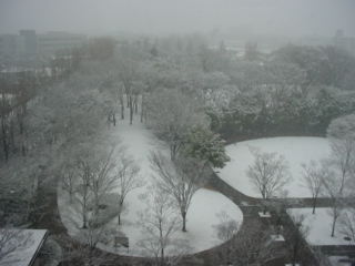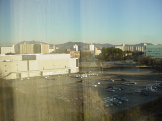 View from the hotel looking South. You can make out Fuji-san in the distance. It's over 100 miles away but still looks incredible. An awesome sight. onday, January 17, 2005I woke up bright and early (430 AM or so) to put my bike together. Everything went nicely and I was ready for a quick ride. I only had time for about an hour but since I hadn't ridden in a few days I was itching to get outside. I bundled up for the near-freezing temperatures and headed out into the darkness, with nothing but a headlight and rear flasher marking my path. The streets were empty, which is not surprising considering the Japanese penchant for not going to work until 9 or 930 in the morning. I was surprised at just how smooth the streets were. I'm used to a mixture of road surfaces around Houston, including concrete, asphalt, broken up asphalt, and chip-seal. Potholes are almost non-existent in Japan, and it was a refreshing change. I did see a few other cyclists out, but they weren't the fitness type. These were Japanese on their single speed commuter specials on the way to who knows where. In the afternoon I headed to the one and only bike shop I know of in Tsukuba. The shop has high quality gear and does not stock the cheap single speed commuter bikes prevalent in Japan. The location was boarded up. Fortunately the location was a 5 minute walk to the hotel so I went back and checked the status. The shop moved about 10 minutes away. I walked over to buy a CO2 cartridge. Using my best Japanese (which isn't that great) I conveyed my desire. I received my cartridge and proceeded to my next mission - asking about roads to ride or group rides. They didn't have any bike maps, and unfortunately their group ride for the coming weekend was mountain bike only.